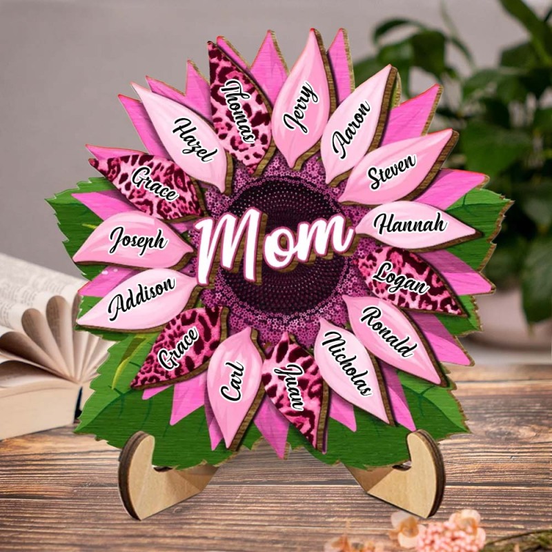 Nana, Mom, Auntie Sunflower - Birthday, Loving Gift for Mom, Grandma Family Home Decor Personalized 2 Layered Wooden Plaque With Stand