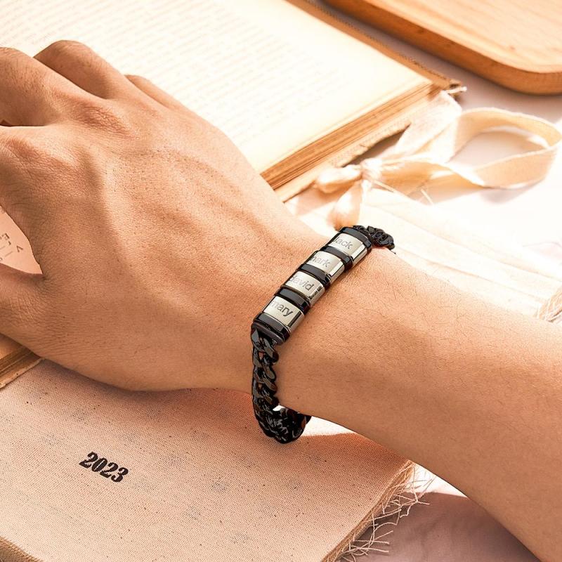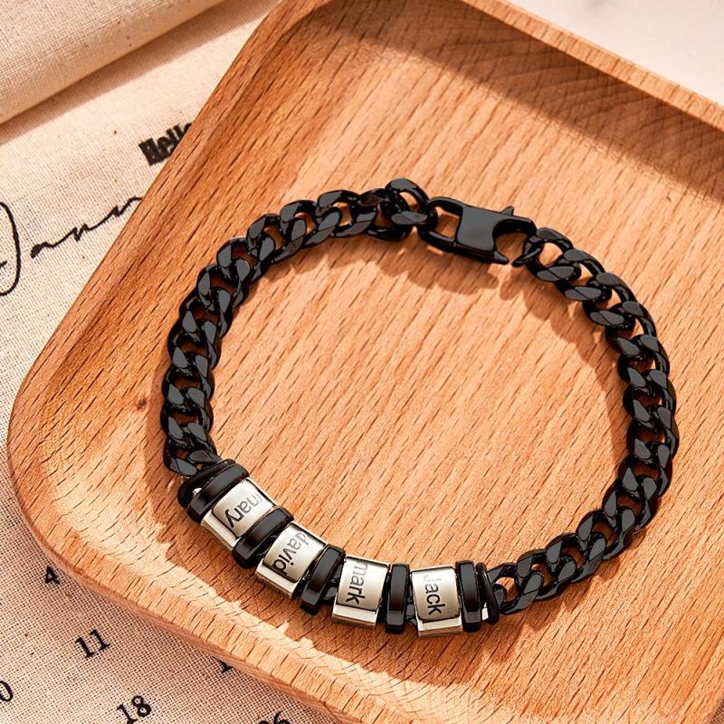 Personalized 1-6 Names Cuban Link Bracelet with Beads for Men Stainless Steel Custom Laser Engraved Jewelry