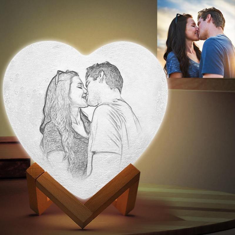 Personalized 3D Printing Photo&Engraved Heart Lamp Anniversary Gift - Touch 3 Colors(10cm/15cm)