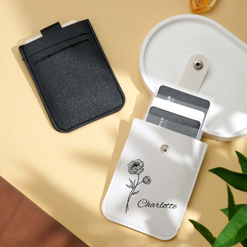 Personalized Birth Flower Wallet with Name Mini Pull-out Card Holder Wallet Gift for Her