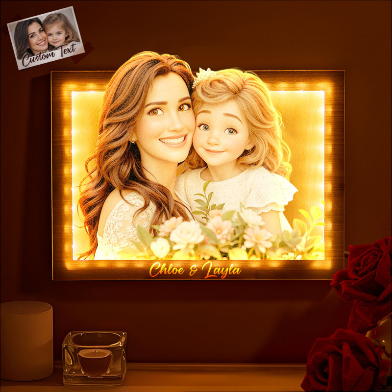 Mother's Day Gifts Personalised Cartoon Style 3D Photo Wooden Frame Sign, Custom Family Photo 3D Cartoon Portrait Gift Comic Photo Frame