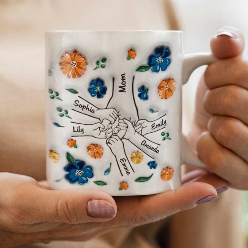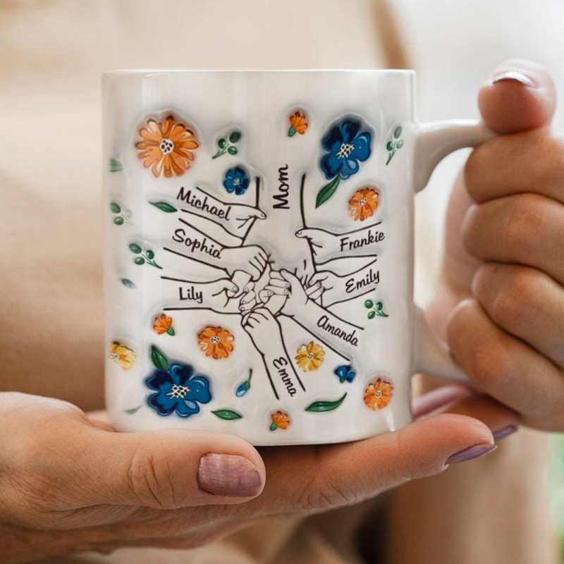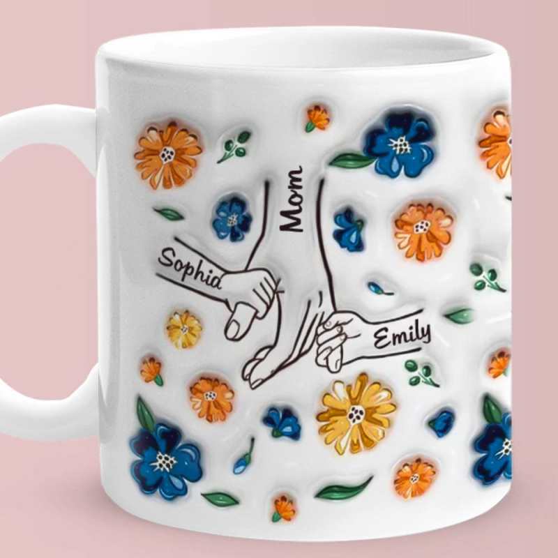 Personalised Custom 3D Inflated Effect Printed Mug Birthday Gift Hold My Hand Hold My Heart Family Mother's Day Gift For Mom Grandma