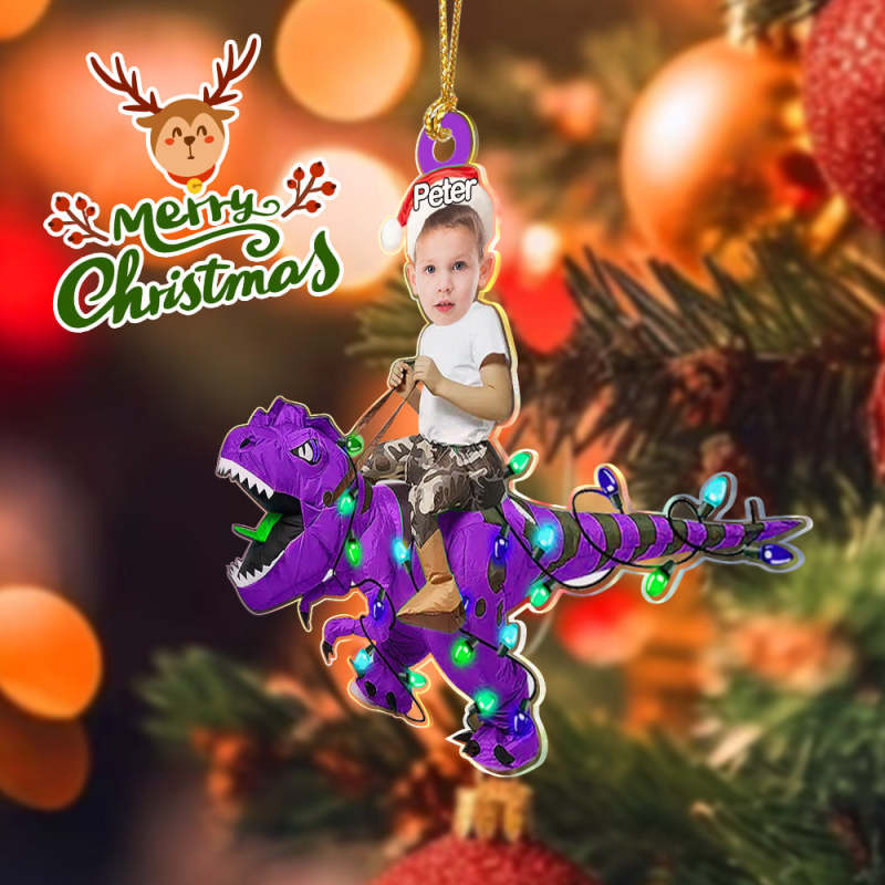 Personalized Cute Kid Rides The Dinosaurus Ornament Christmas Gift for Kids
