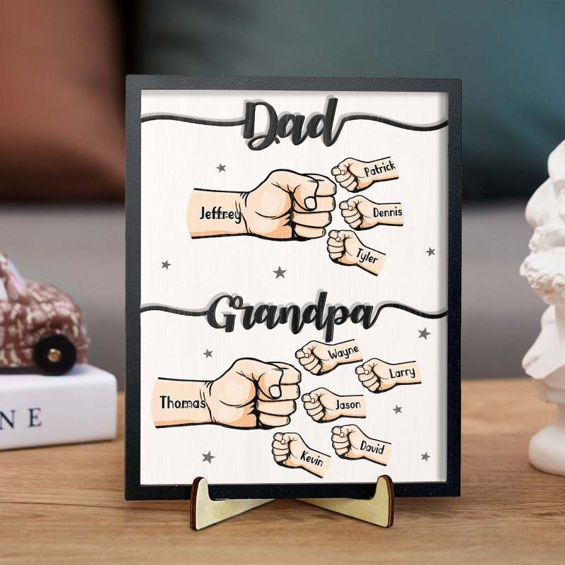 Personalised Names Fists Bump Dad Grandpa Wooden Plaque Father's Day Gift