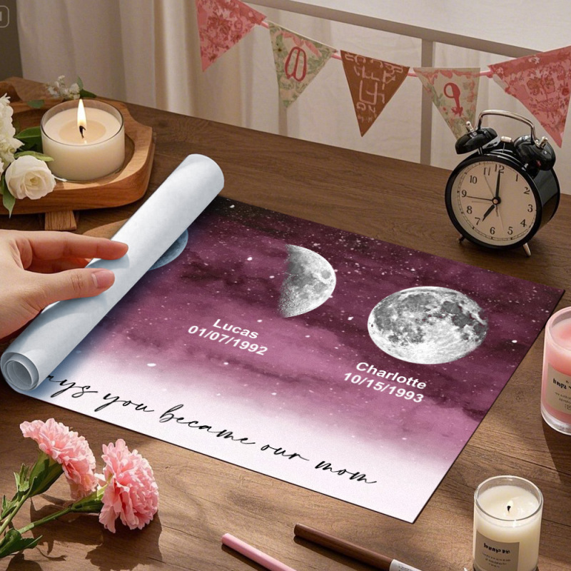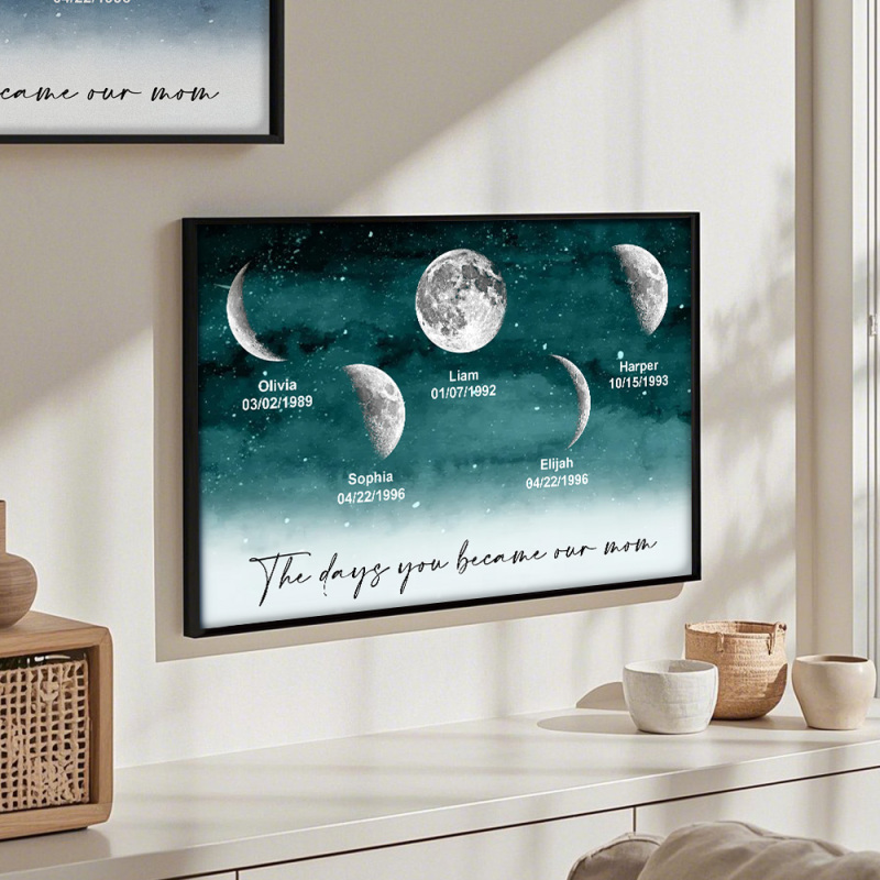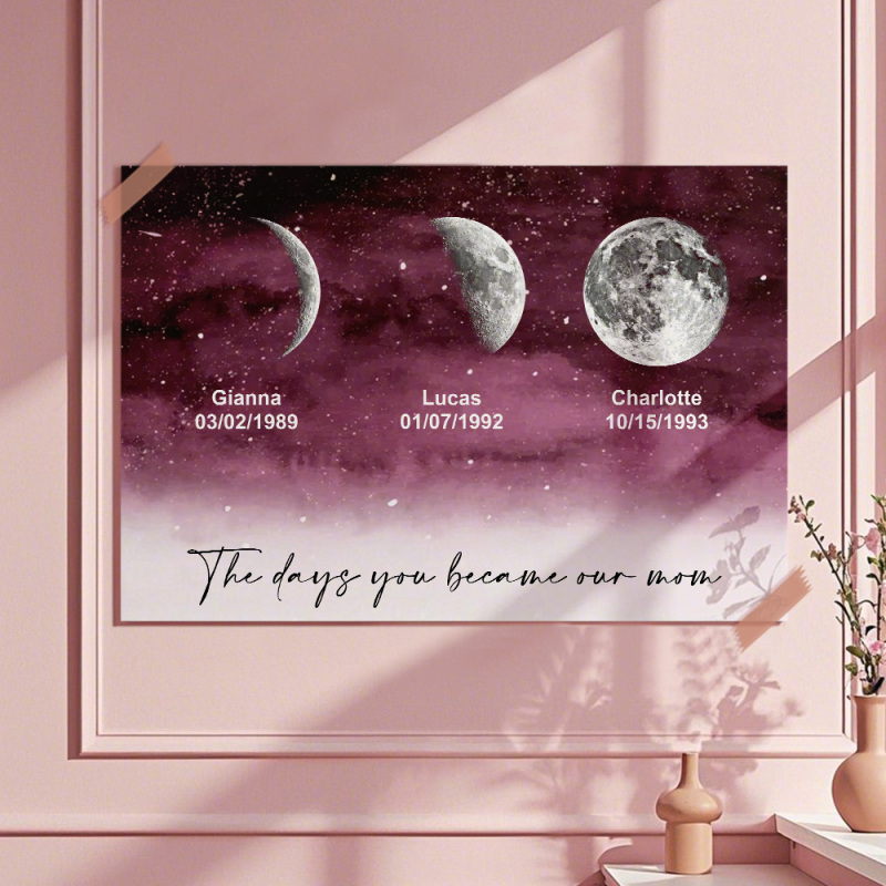 Starry Night The Day You Became Mom Birth Moon Phase Personalized Poster, A Heartfelt Gift for Mom's Birthday, Mother's Day, or Just Because