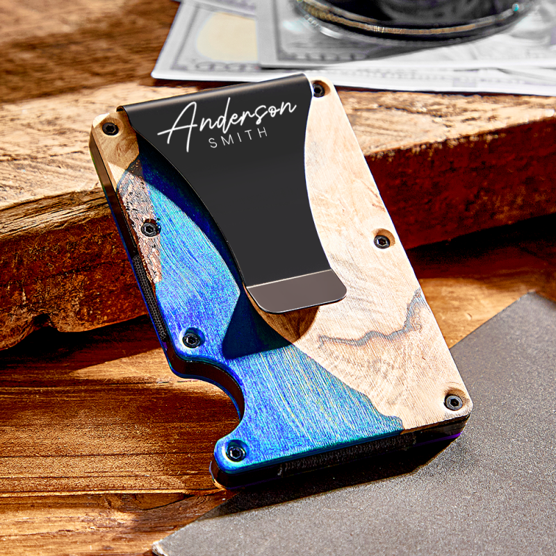 Unique Christmas Gift For Men, Resin Wood Money Clip, Card Holder Wallet, Groomsmen Gifts, Fathers Day Gift, Mens Wallet, Handmade Gift For