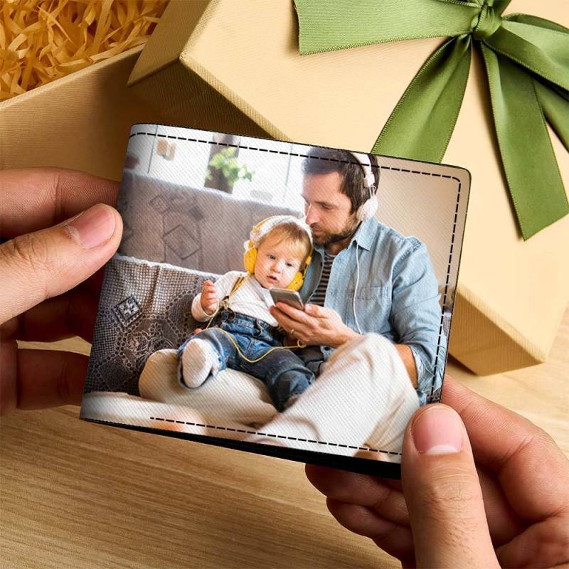 Personalized Photo Men's Wallet with Custom Text on Back Birthday Gifts for Him