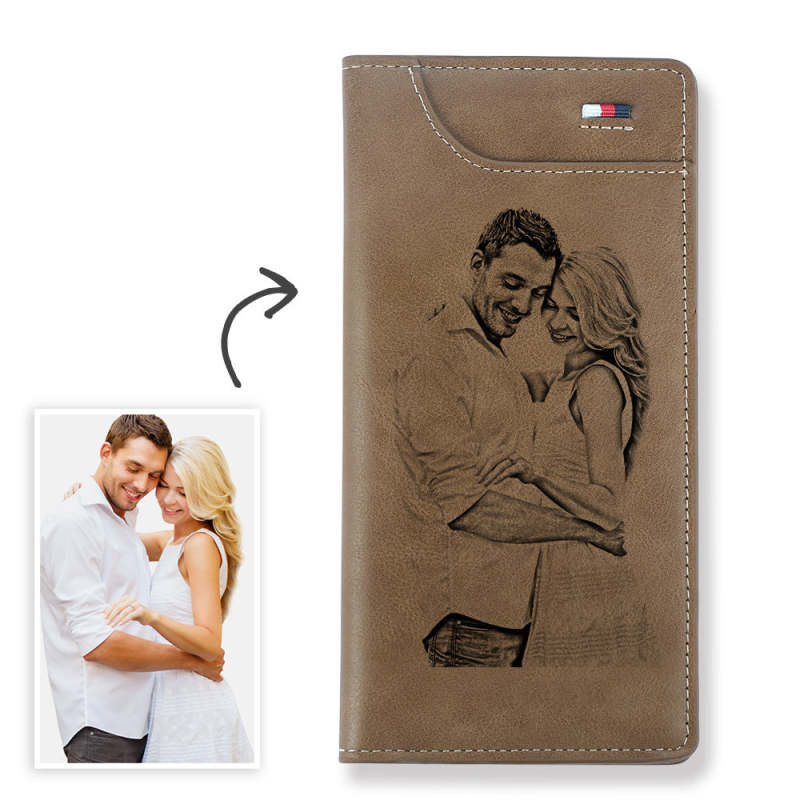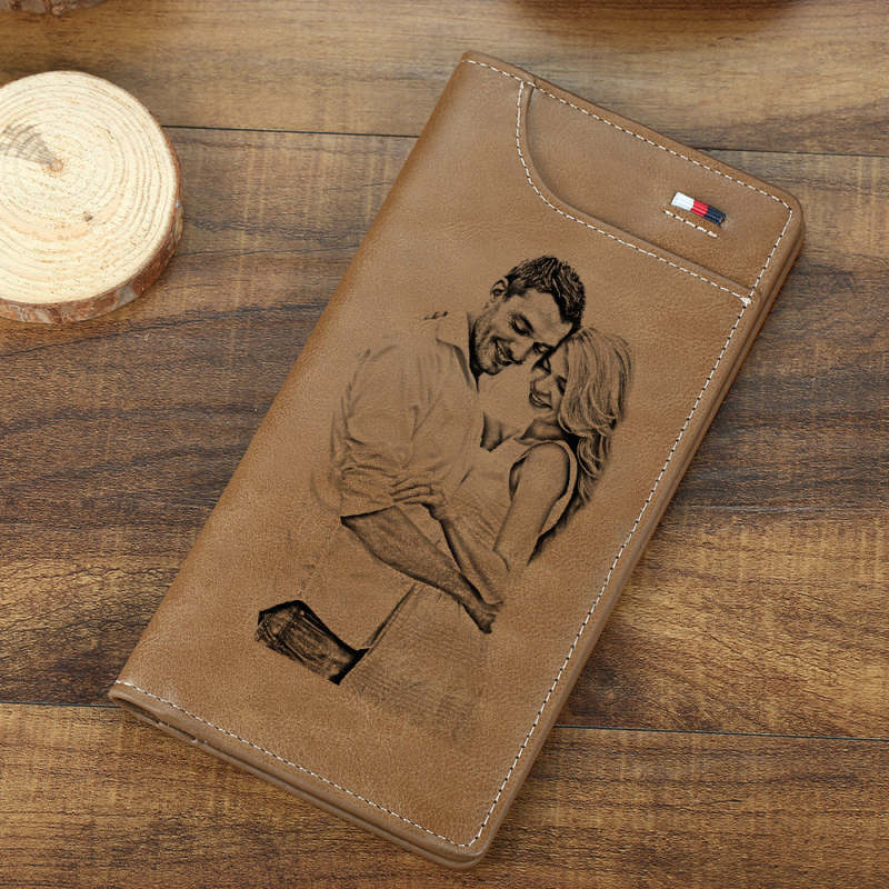 Women's Custom Engraved Photo Wallet Brown Leather Gift For Her