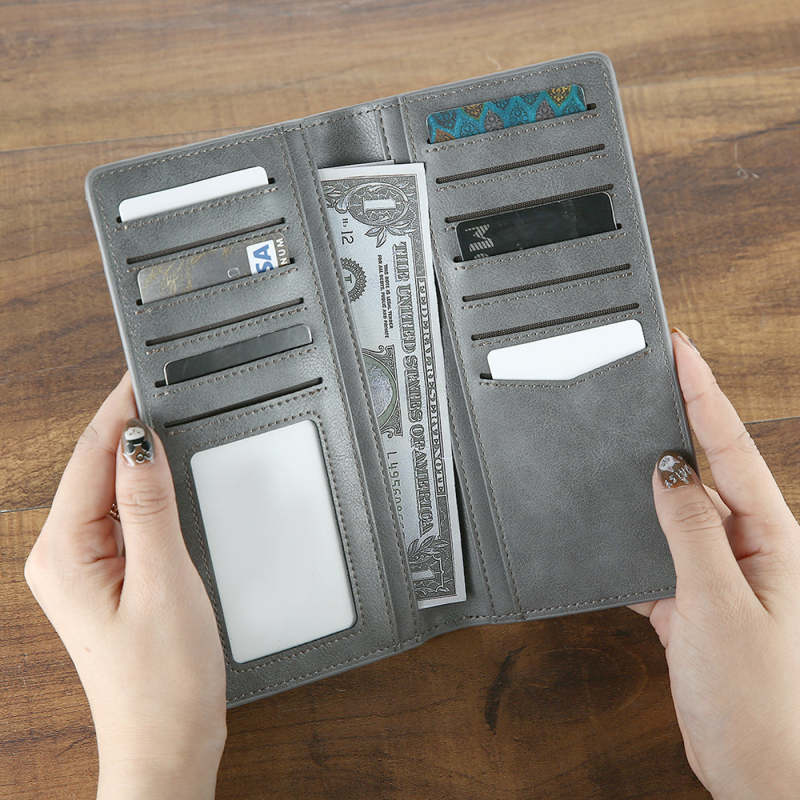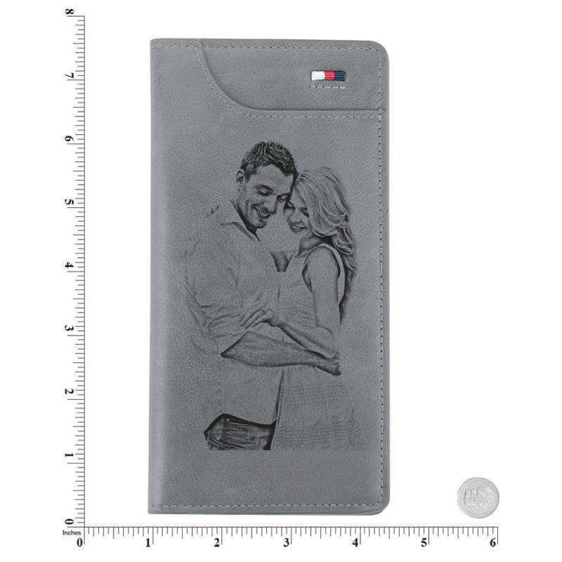 Women's Custom Engraved Photo Wallet Grey Leather Gift For Her