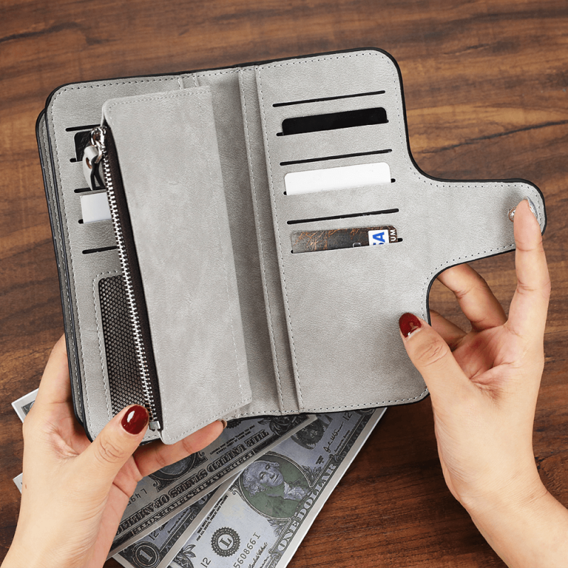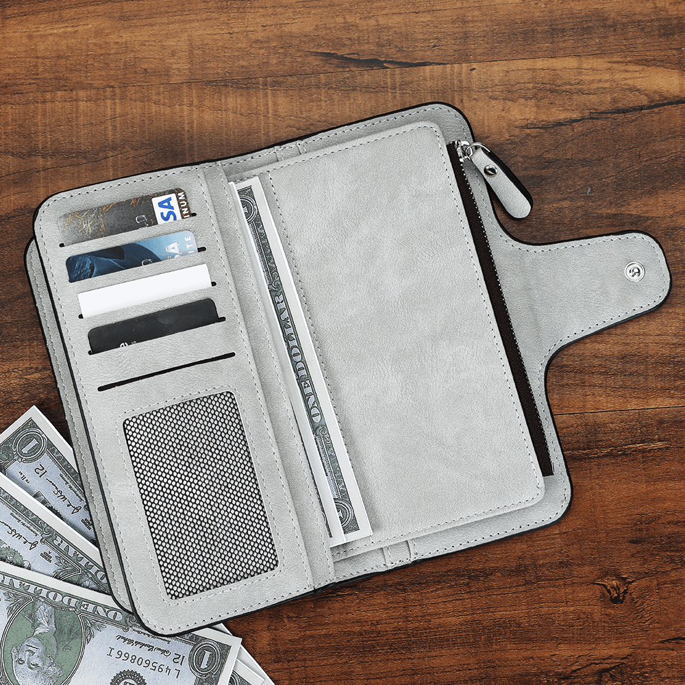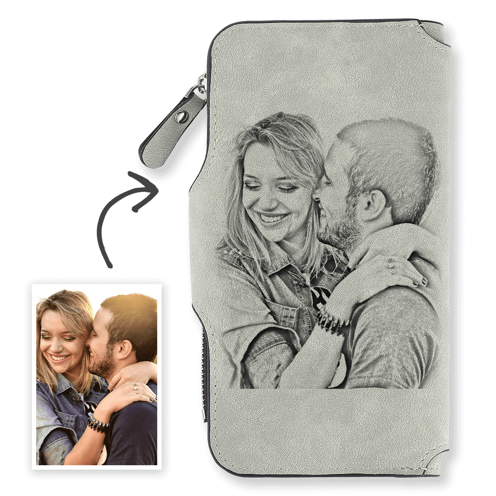 Women's Long Style Custom Photo Wallet Grey (Design Online & Preview)