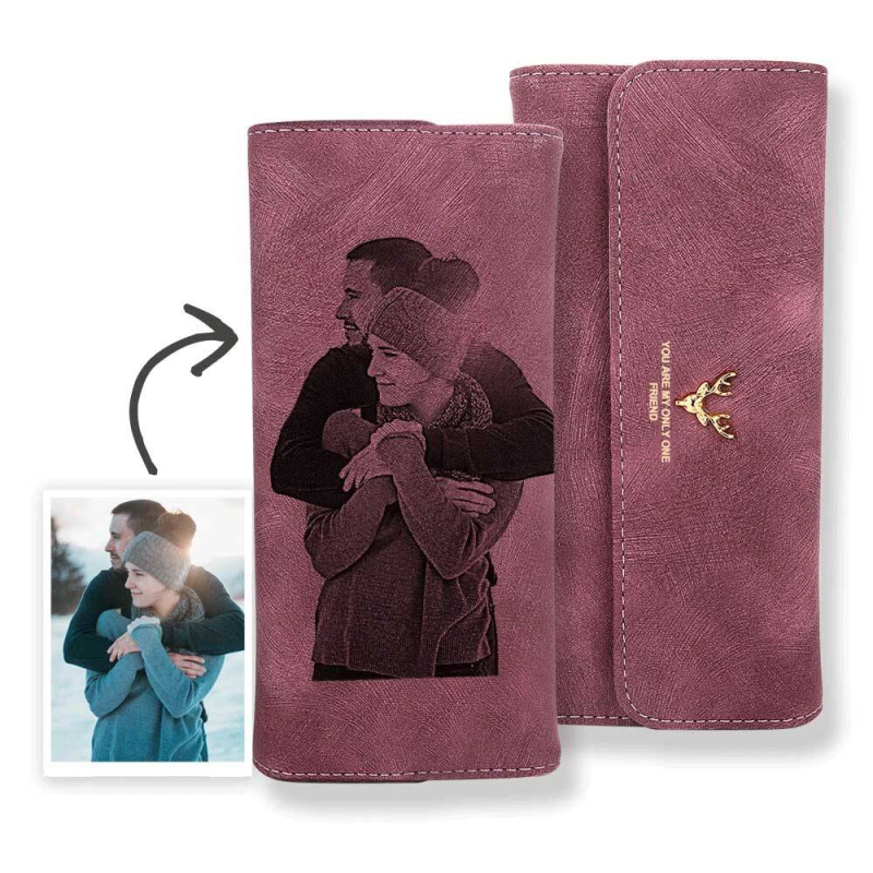 Personalized Wallet | Custom Photo Engraved Wallet | Women's Long Leather Wallet Gift For Her