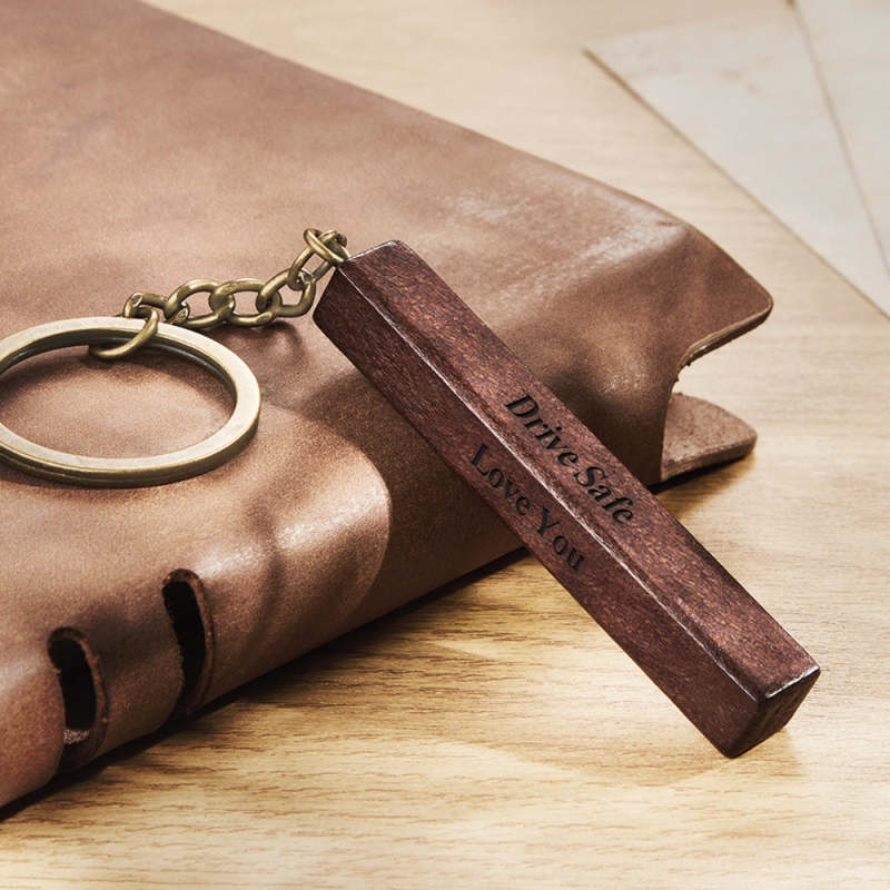Wood Bar Keychain Custom 4 Sided Engraved Keychain Wooden Keychain