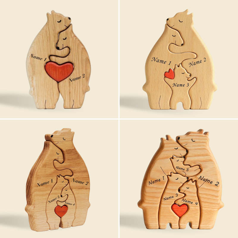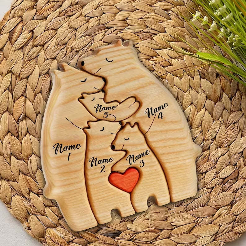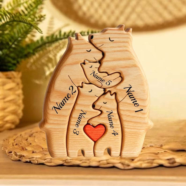 Wooden Bears Family Custom Names Puzzle Home Decor Gifts